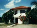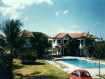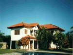 Kleine geschlossene Residenz in Touristenzone, mit drei Häusern, die um einen gemeinsamen Pool gebaut sind.