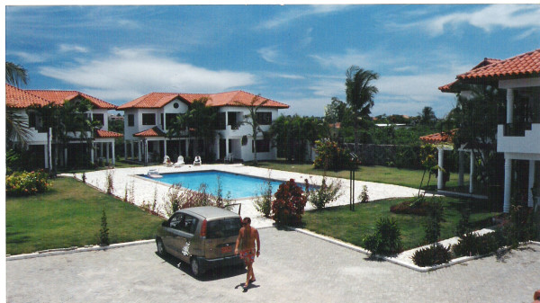 Kleine geschlossene Residenz in Touristenzone, mit drei Häusern, die um einen gemeinsamen Pool gebaut sind.