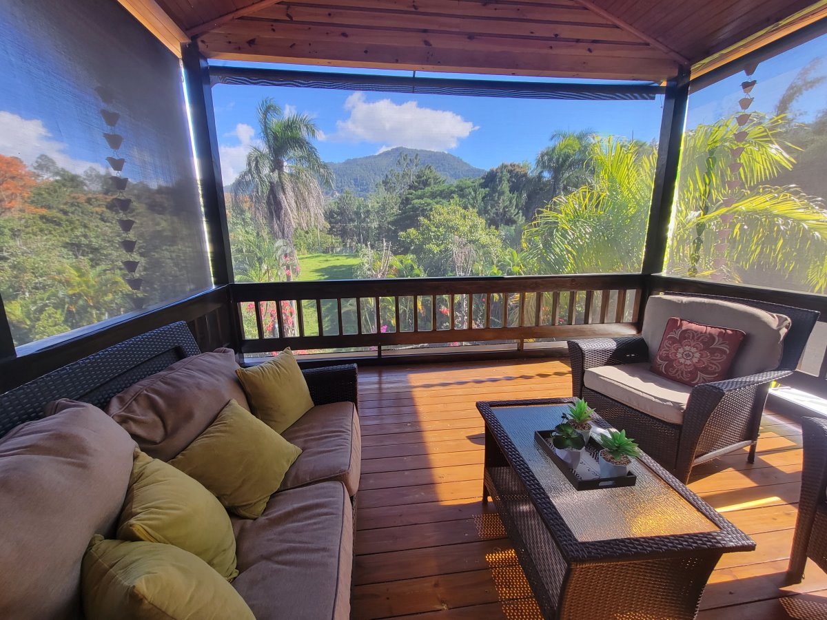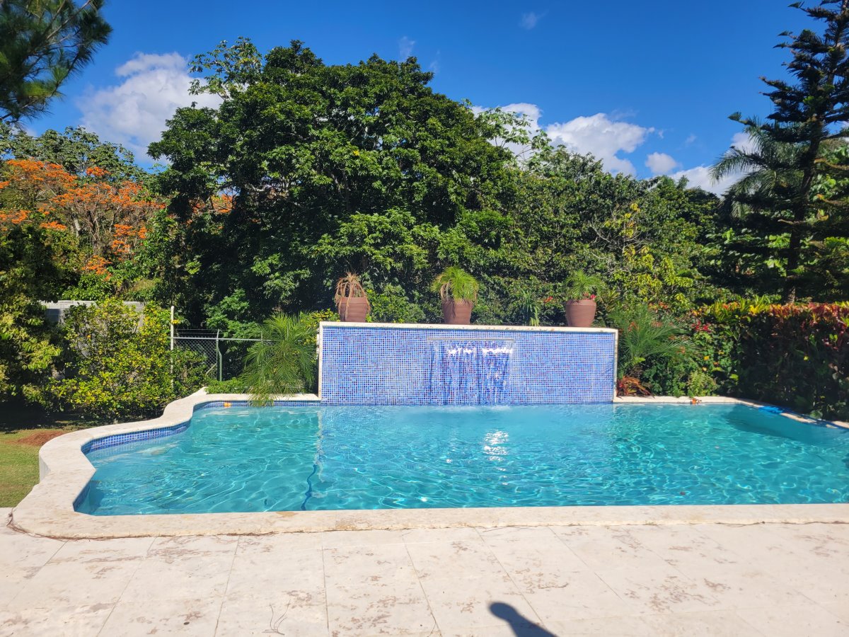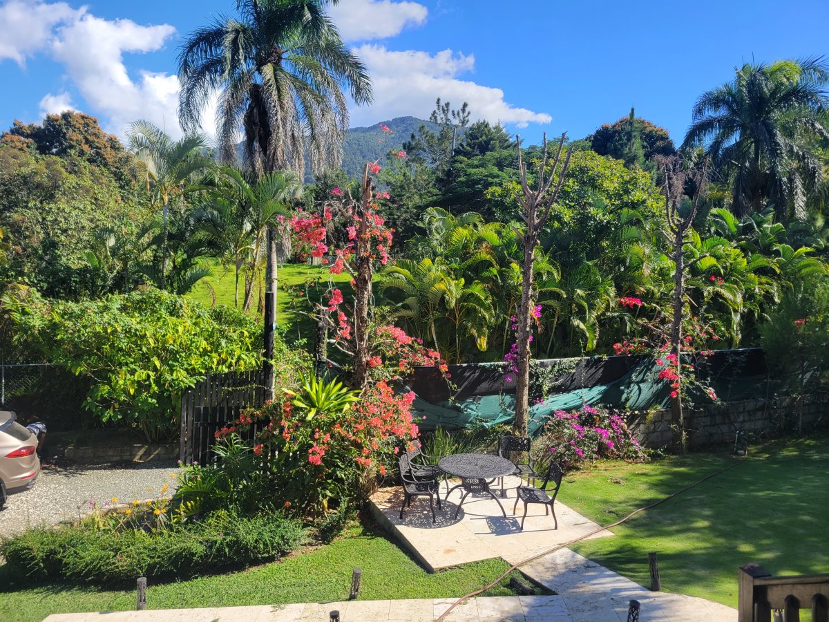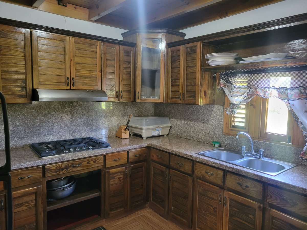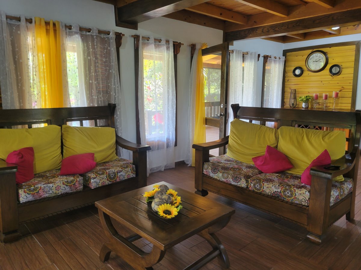 Linda Cabaña de dos niveles con vista hacia la montaña. Sala/Comedor, Cocina 4 Habitaciones 5 Baños Terraza grande Jardín con Piscina Sótano con cuarto de mantenimiento Adicional en construcción una casita para un empleado La venta incluye los muebles. Terreno: 1,600 mts (1,200 con certificado de título; el resto con acto de venta). Amueblada: Si Comunidad cerrada: Si |