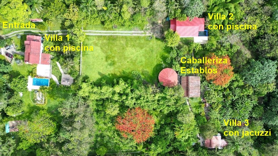 Si amas la naturaleza y estás en el proceso de dar forma a tu futuro, aquí tienes el proyecto de tus sueños!!! Propiedad con un terreno de 15,717.52 m², dentro de un residencial cerrado, cuenta con tres Villas: VILLA # 1, dos niveles: sala, comedor, cocina, 3 habitaciones, 2 baños, balcones y terraza, área de piscina, gazebo y cancha, cocina exterior. Aprox. 200.00 m².. VILLA # 2, dos niveles y un sótano: sala, comedor, cocina, 5 habitaciones, 2 baños, balcón y terraza, área de piscina. Espacio para 14 personas. Los grupos son bienvenidos. Aprox. 300.00 m². VILLA # 3, un nivel: sala, comedor, cocina, 2 habitaciones, 1 baño, 2 terrazas, área de jacuzzi. Aprox. 90.00 m². Además, caballerizas, pabellones y aviarios. Jardín tropical con gran variedad de flores y árboles frutales. Oportunidad de mayor desarrollo o expansión. Interesante para constructores o inversores. |